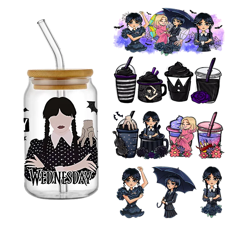 Wednesday Girl DTF Sticker For Cups Cool Personalize UV Wrap Transfer Sticker Custom Labels DIY Logo Selfadhesive Waterproof - Купить с бесплатной доставкой