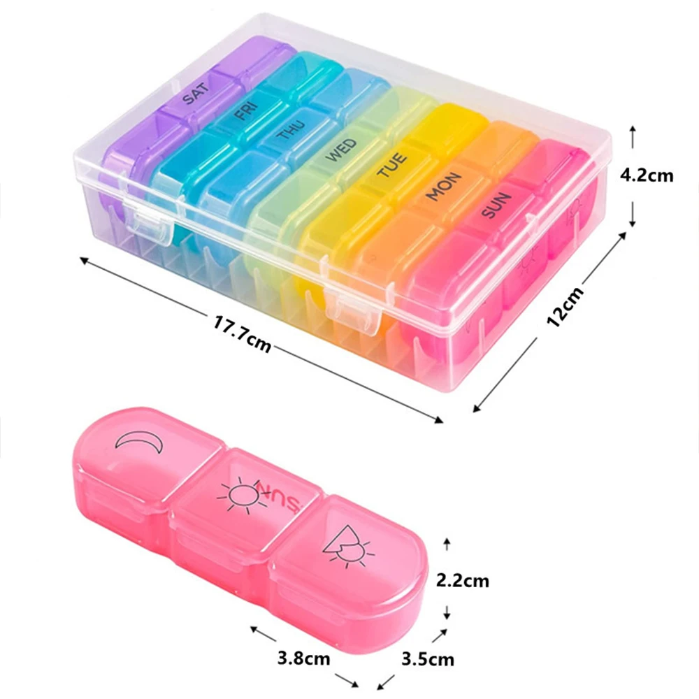 «Weekly Pill case Medicine pill box Small pillbox for 7 days 7 colors for gelatin capsules splitter pills organizer case» по лучшей цене на рынке! Всего за 16$ (1520рублей)