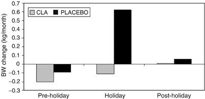 This study aims to review the literature to determine the effects of the holidays on body weight . In studies of adults, a significant weight gain was consistently observed during this period (0 .4 to 0 .9 kg, p < 0 .05) . The only study in college students found an effect on body fat but not on weight (0 .1 kg, p = 0 .71) .