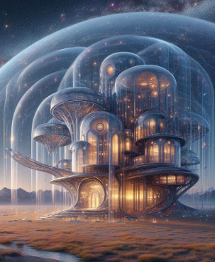 Your home is Created in a triangular shape. Crystal columns are displayed on the corners of the veranda. Blue sofas and chairs with white tables fill the family room. Your 48 adult children and their families visit to dine as music plays. A statue of Elder Wanovar is displayed in a large hallway. Stairs lead to green grass and yellow flowers. Fairies fly through the air with lavender dragons. You fly in body form to the top of orange mountains and you meditate here with Gratitude for life!