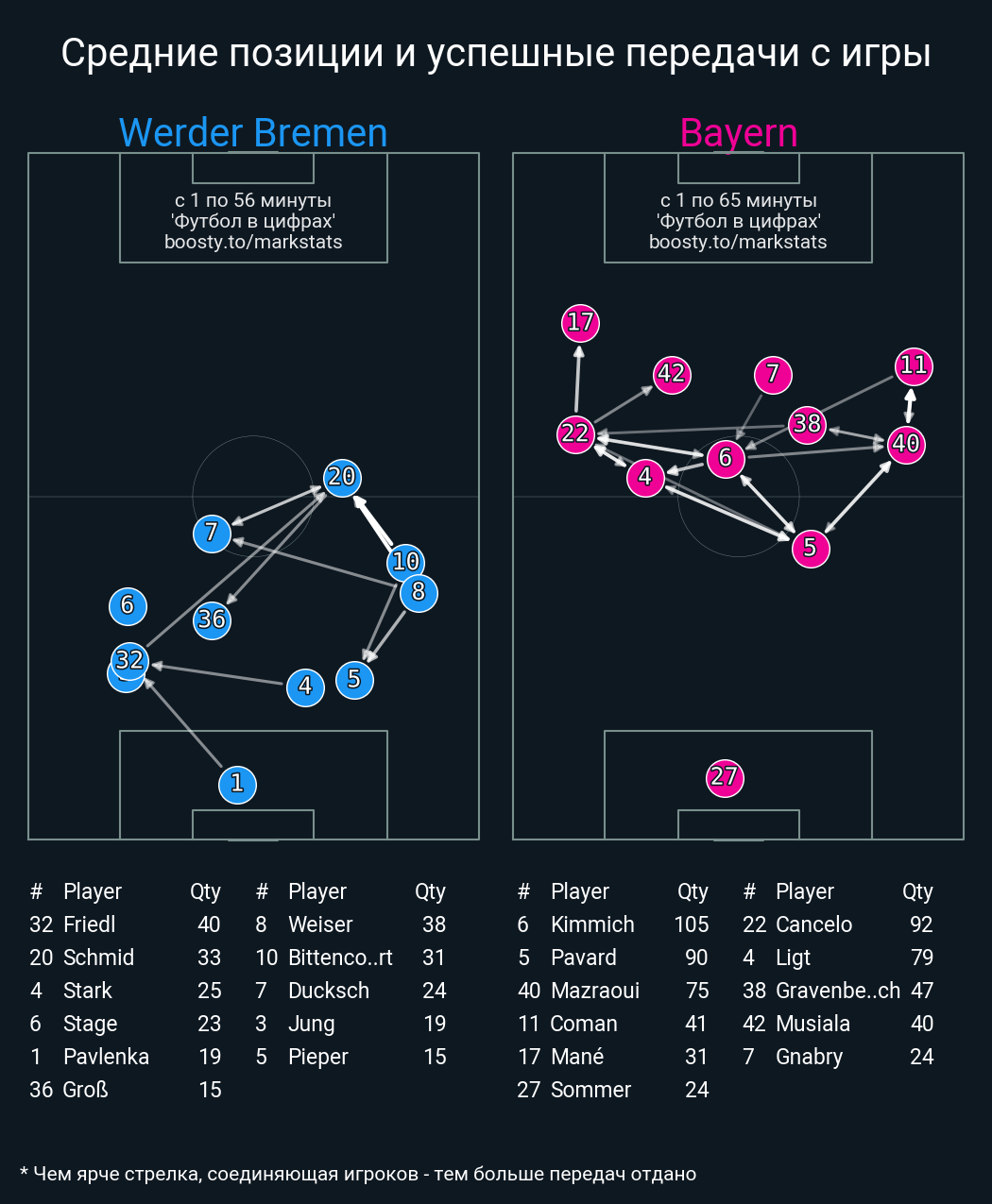 93 успешных передач из 105 попыток (5 с продвижением, 16 на трети соперника)