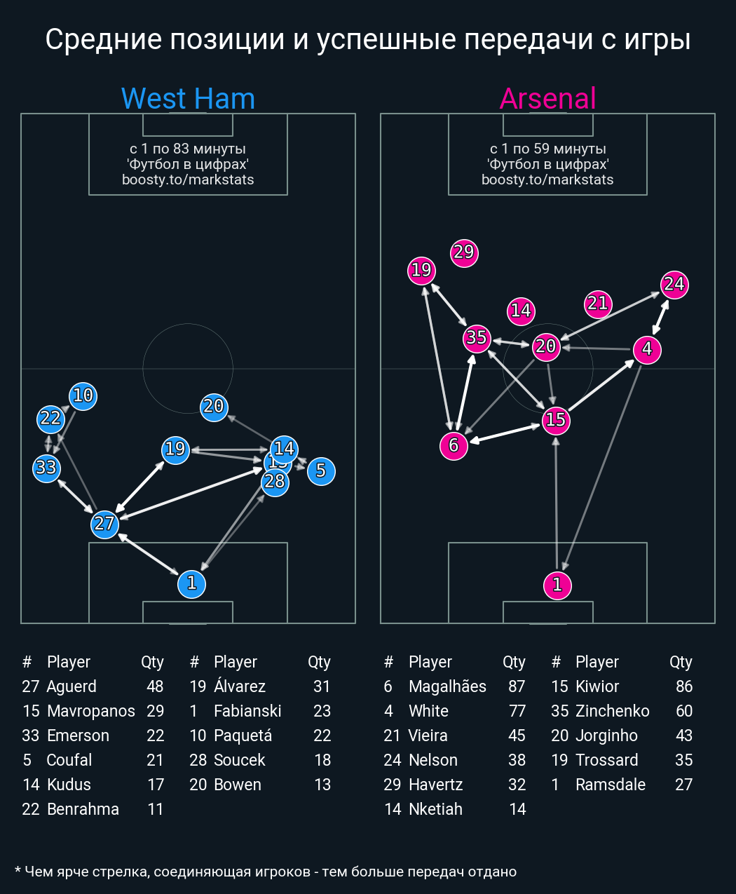 78 успешных передач из 87 попыток (3 с продвижением, 4 на трети соперника)