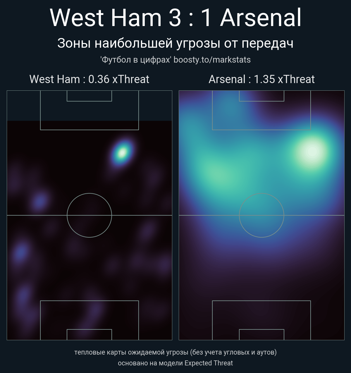 xThreat без учета угловых: 0.36 - 1.35