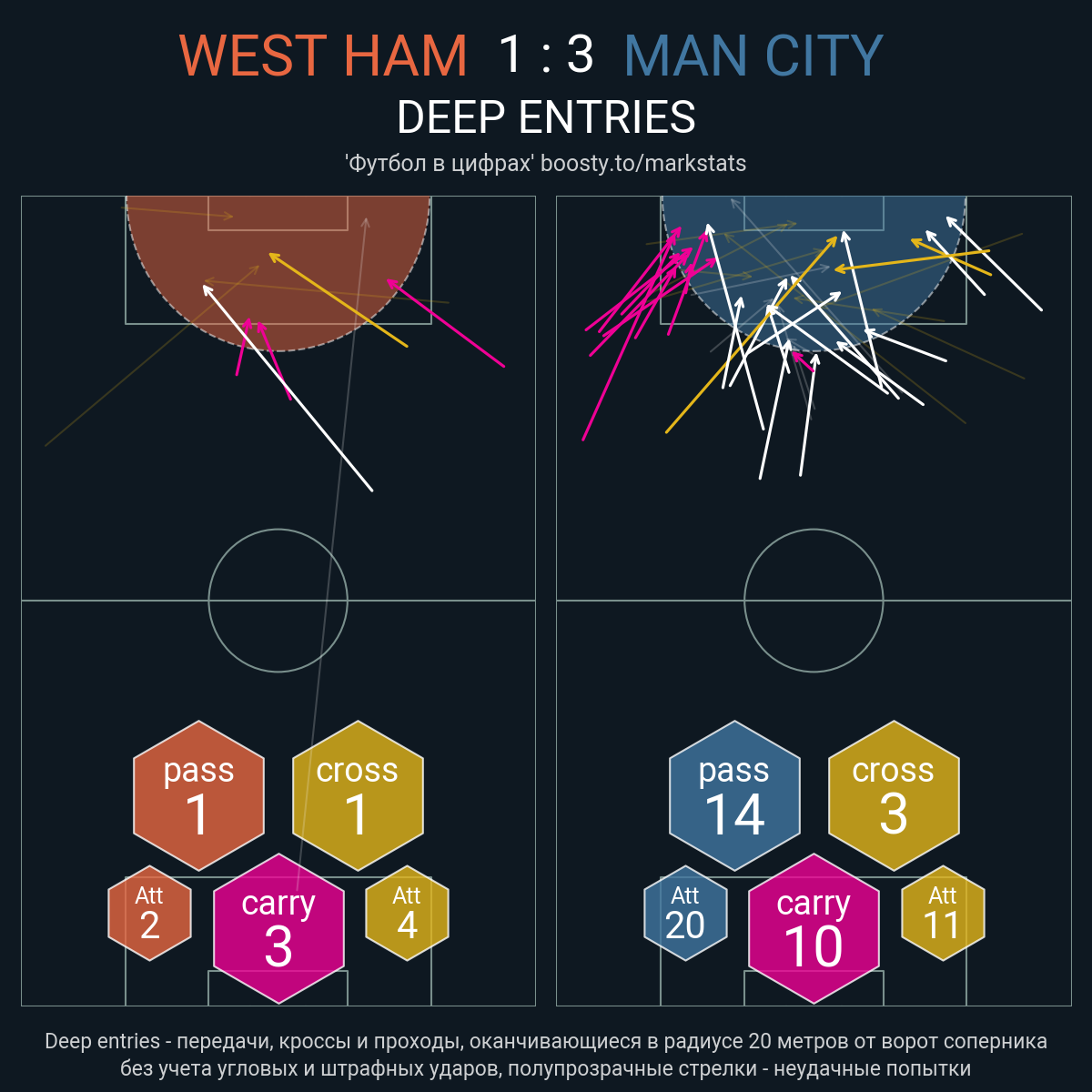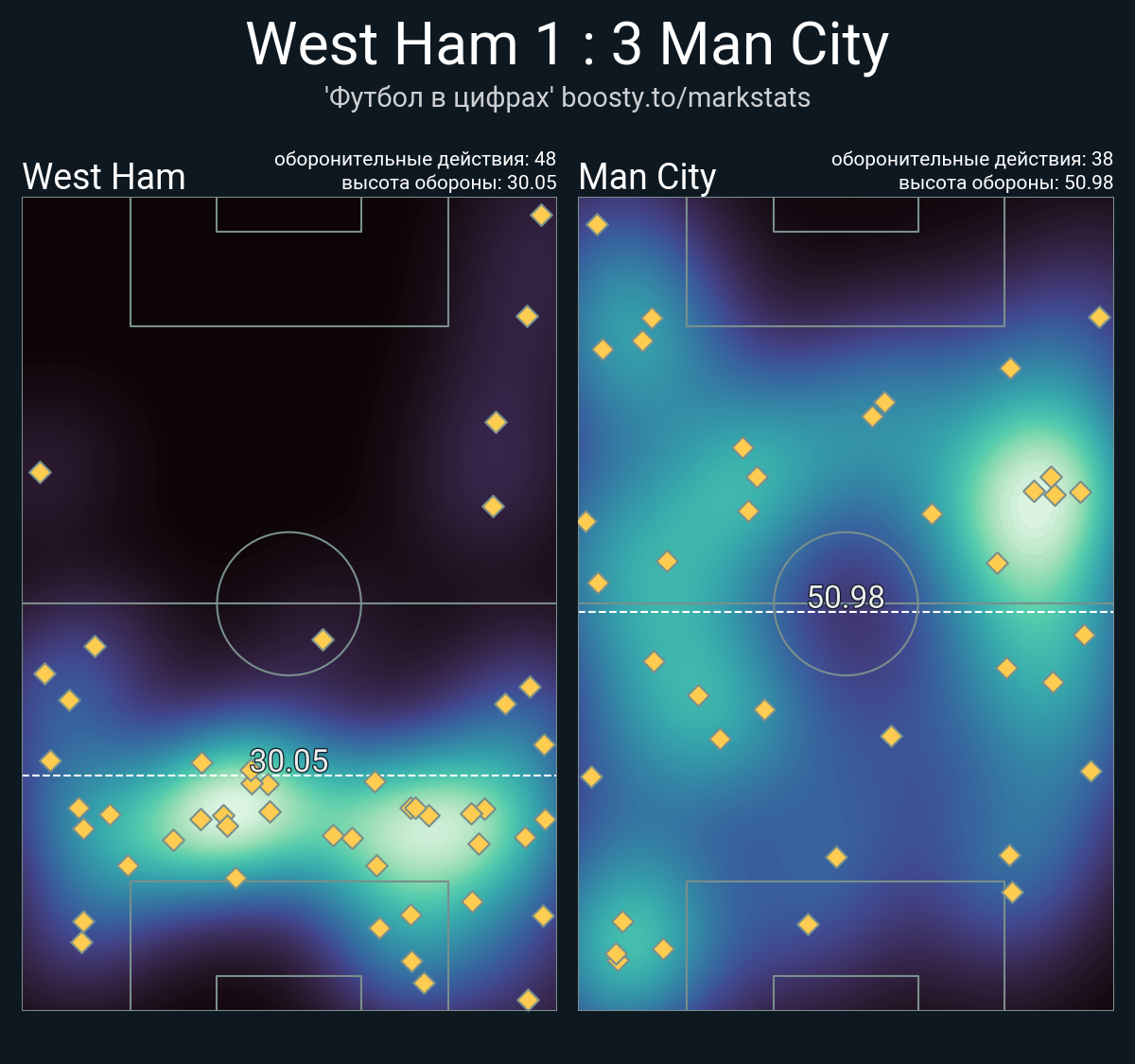 Ожидаемые голы (NPxG): 0.68 - 3.93