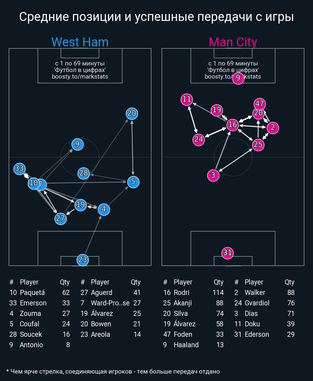 112 успешных передач из 115 попыток (4 под удар, 8 с продвижением, 28 на трети соперника)