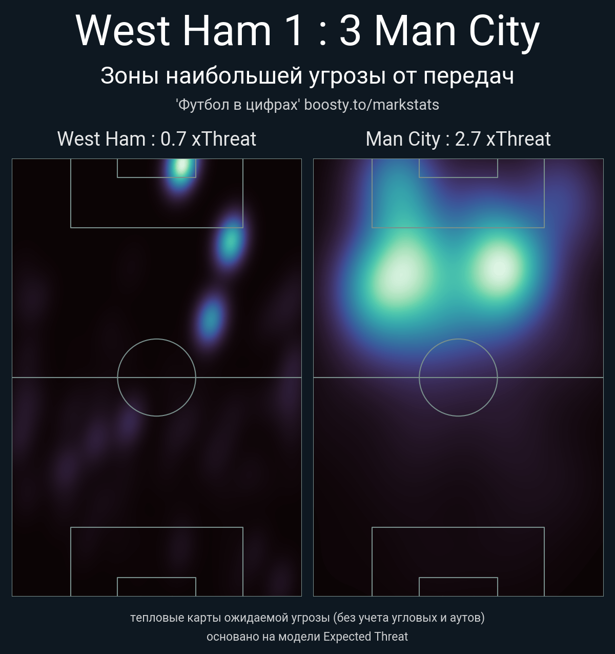 xThreat без учета угловых: 0.7 - 2.7