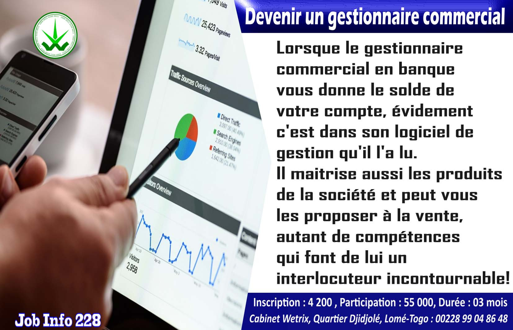 Après avoir suivi ensemble avec nous plus de 2000 offres d’emploi publiées sur Job Info 2228, vous comprenez mieux les besoins du marché du travail au Togo et c’est à nous de nous adapter à ce marché très concurrentiel et non le contraire ! Ne perds plus temps, tu peux déjà commencer à travailler grâce nos formations, rejoints-nous maintenant!