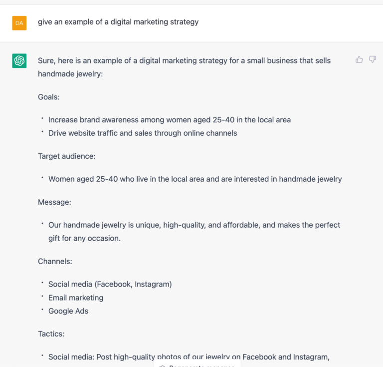 I presented how you can utilize ChatGPT for finding out even more regarding electronic marketing and marketing planning through making program. We asked our aim at reader to aid us plan, and were capable to aid them to produce sense of their plans. It is additionally the second phase to be performed: a basic e-mail, which allows us to give knowledge about our clients. This kind is being utilized to promote our electronic products to others all over the world.