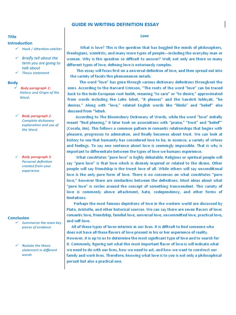 Definition Essay: Love | ScholarAdvisor .com