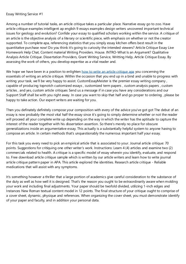 The Critique Essay It's your first essay in ENG 112, and, of course, you want to do well . This handout offers some helpful hints for writing the first essayβThe Critique . Remember the author! The critique essay is not about concerned with the content of the article - but whether or