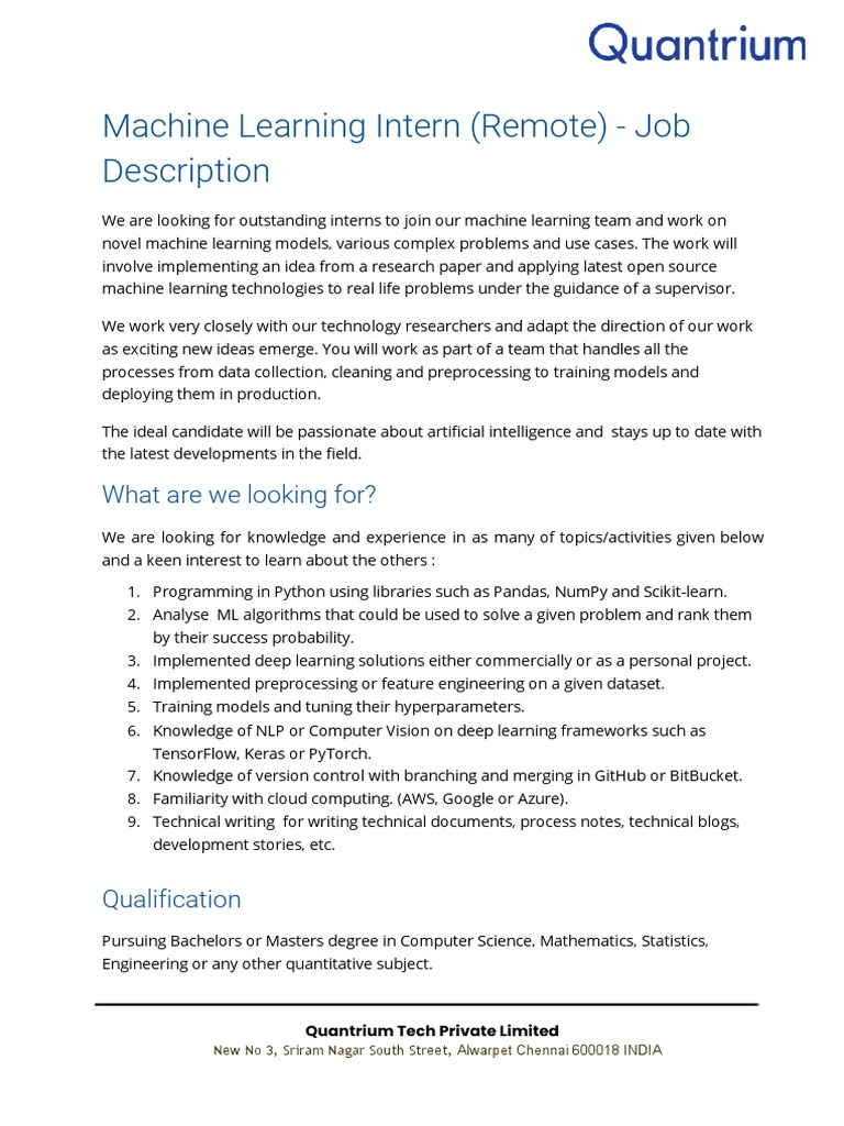 Quantitative Researcher Job Description
