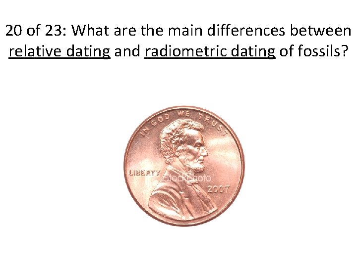 Relative dating and radiometric dating are used to determine age of fossils and geologic features, but with different methods . Relative dating uses observation of . Start studying Relative Dating , Fossils, and Radiometric Dating . What is Relative Dating . What is the difference between .β¦ continue reading Β»