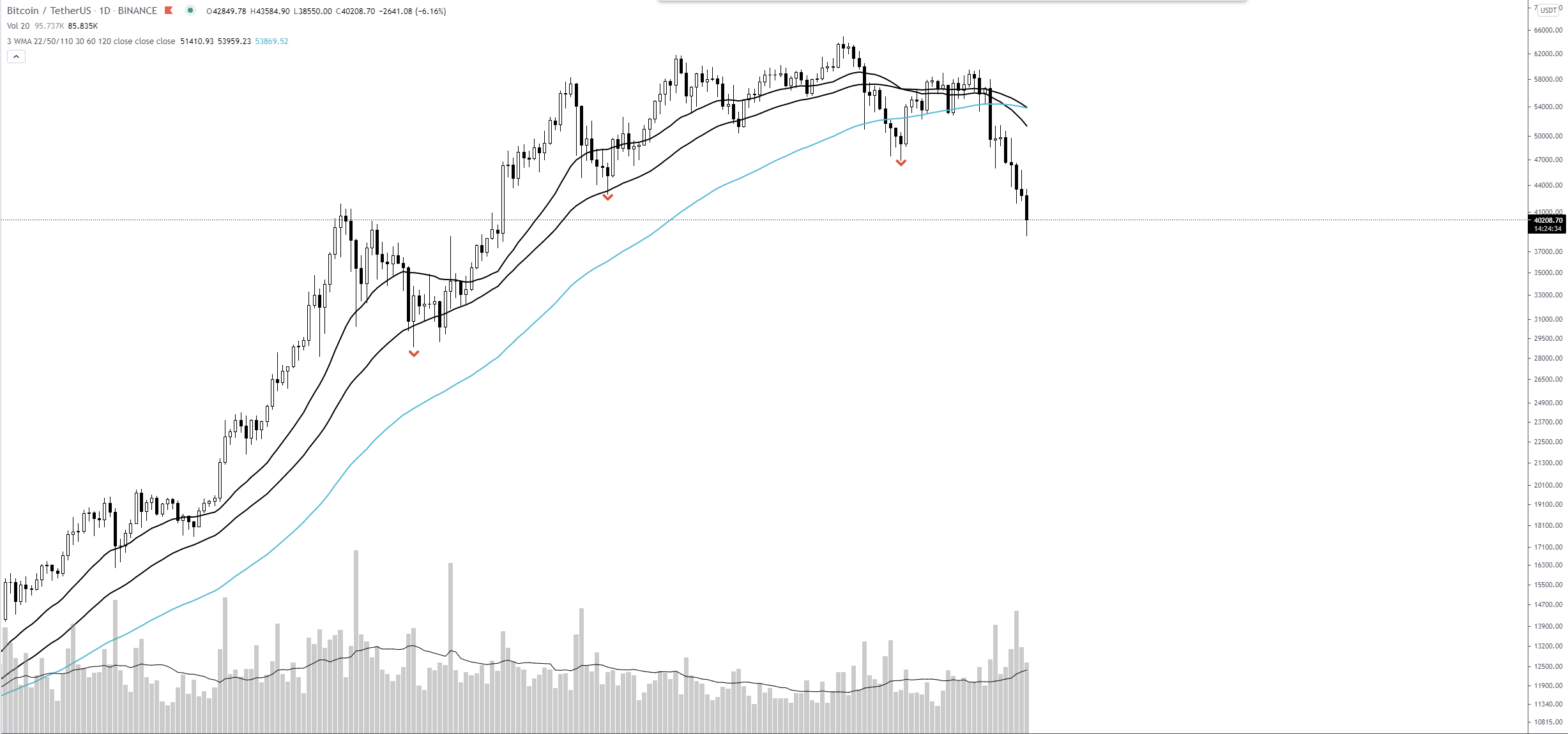 This is probably the reason for the current volatility, it is extremely ineffective to tie it to something on the chart now, coins can just "randomly" shoot up by tens of percent in few hours and instantly level out the whole growth. And that's us omitting the panic sell-offs as well...