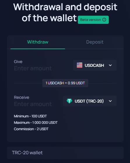 🔹Secondly, you can withdraw from the EOS (USDCASH) to the TRC-20 (USDT), or to a bank card through «Acquiring» (in the app there is a «Deposit and Withdrawal»):