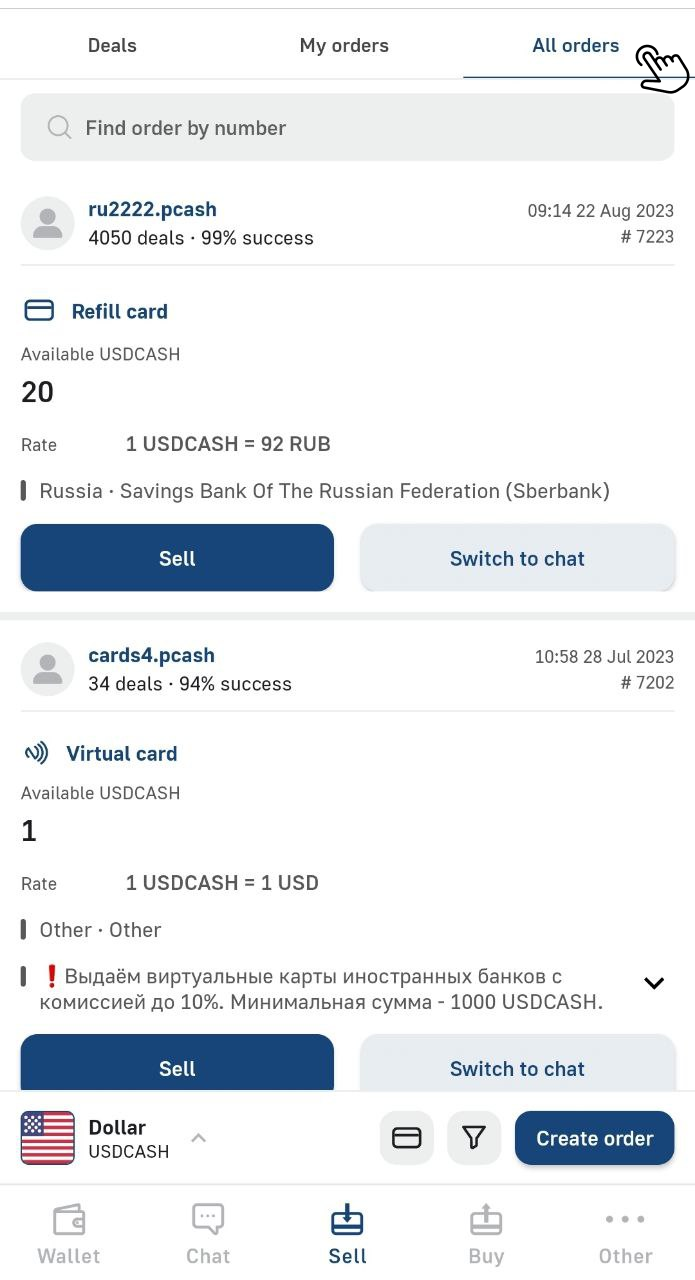 🔹Fourthly, you can withdraw funds directly through the PayCash app, in the «Sell» section: