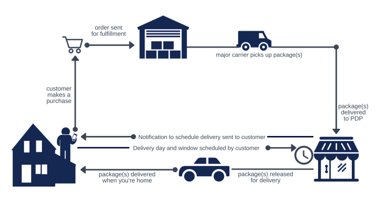 - John’s package arrives at his local Package Delivery Point (PDP)