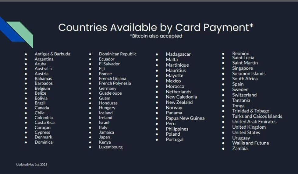 - We are currently working with 105 countries and are open for payment with various methods.