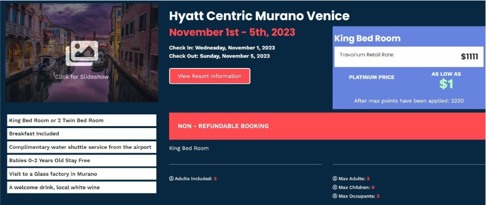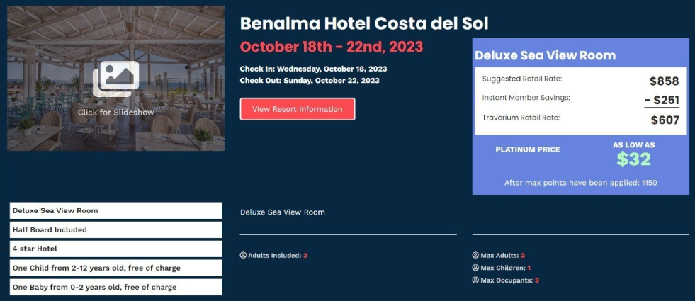 "Travorium is an American company that provides customers with a hotel, resort, and cruise booking service at discounts of up to 75% off prices on Booking & Expedia. This is made possible through exclusive agreements with platforms that handle these bookings and track vacant rooms in over 2 million hotels, offering them to us, VIP club members, who have access to this database"