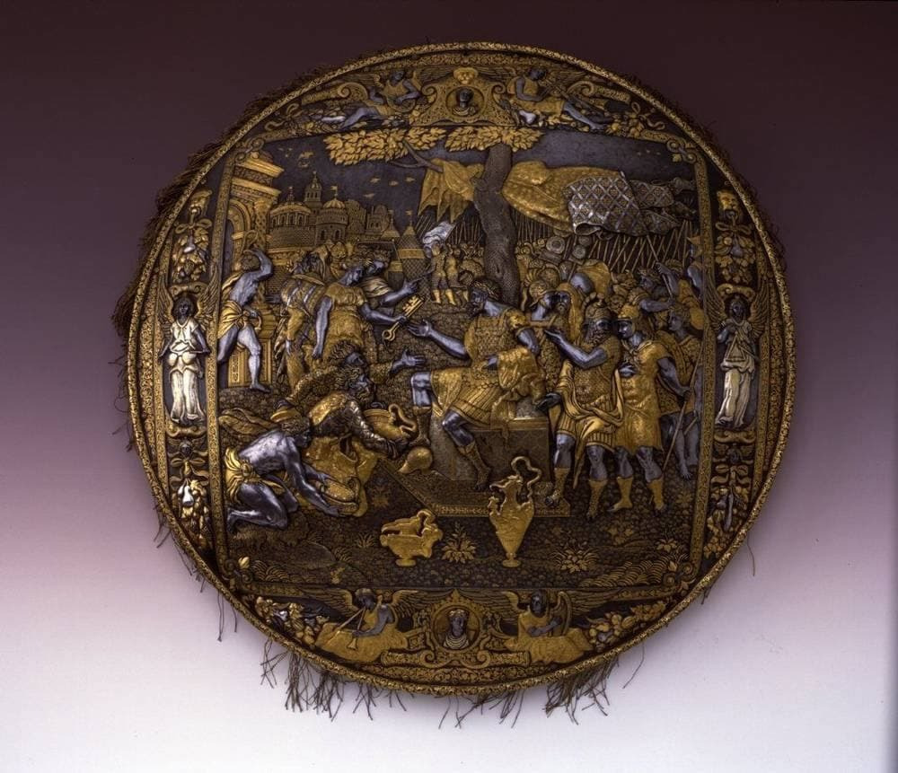 Михаил БеляковПосмотрите на этот прекрасный золоченый щит из Милана, изготовление которого приписывают римскому издателю и гравёру Антонио Саламанке. Англоязычный омофон, который обыгрывается в заголовке, относится явно не к этому шедевру.