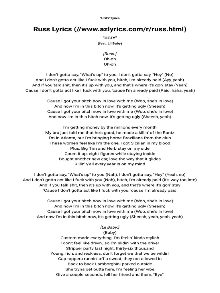 *No room for you, bitch, get out . Get out, get kicked out . (Three times he tells her to get out . Three . Fuck, man .) *You can pout your lips and say I tripped, but get your shit and get out . (Four . . .