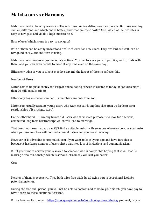 Which Dating Site Is Better Eharmony Or Match
