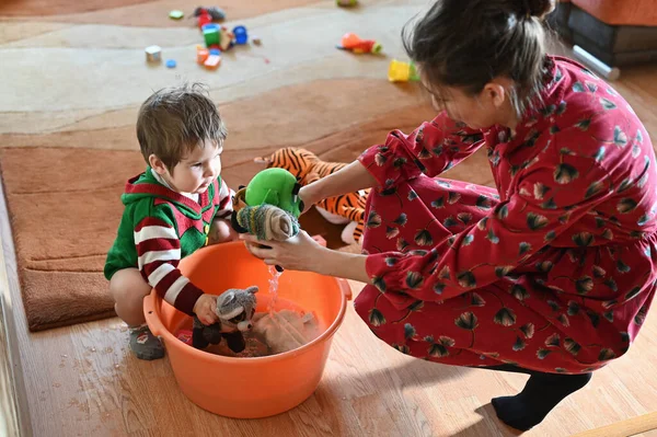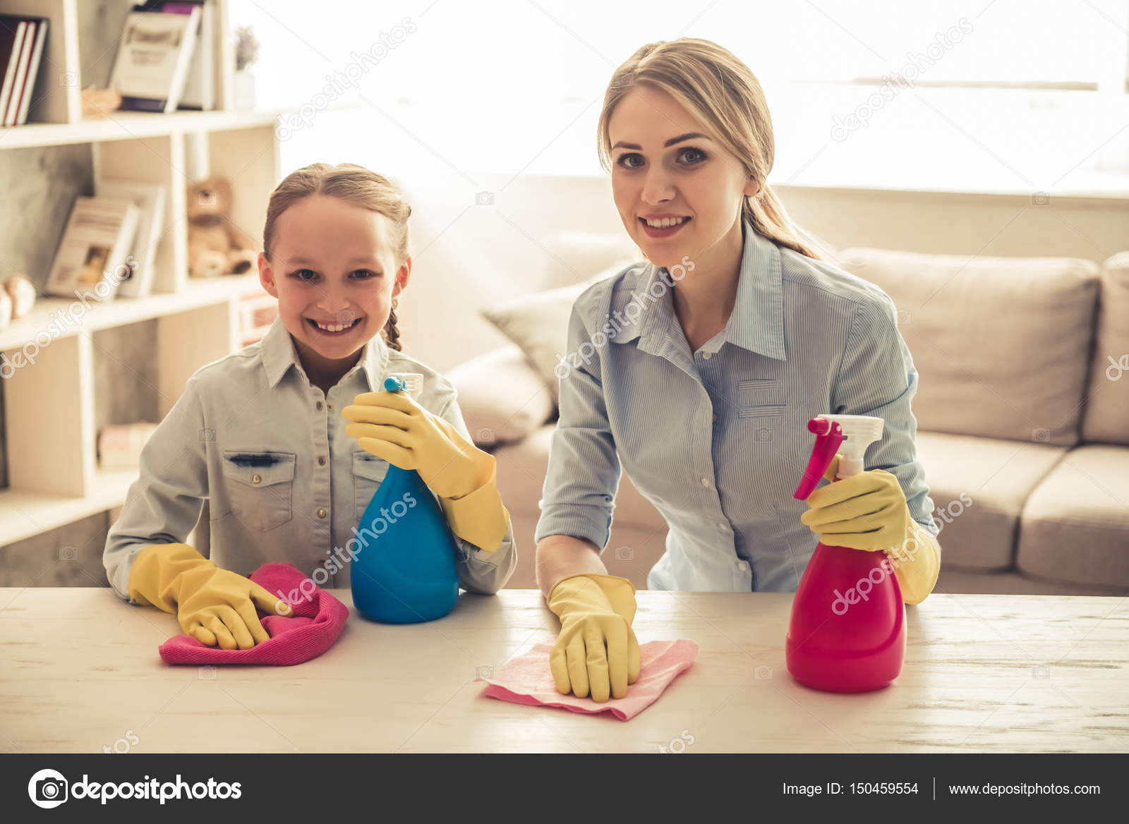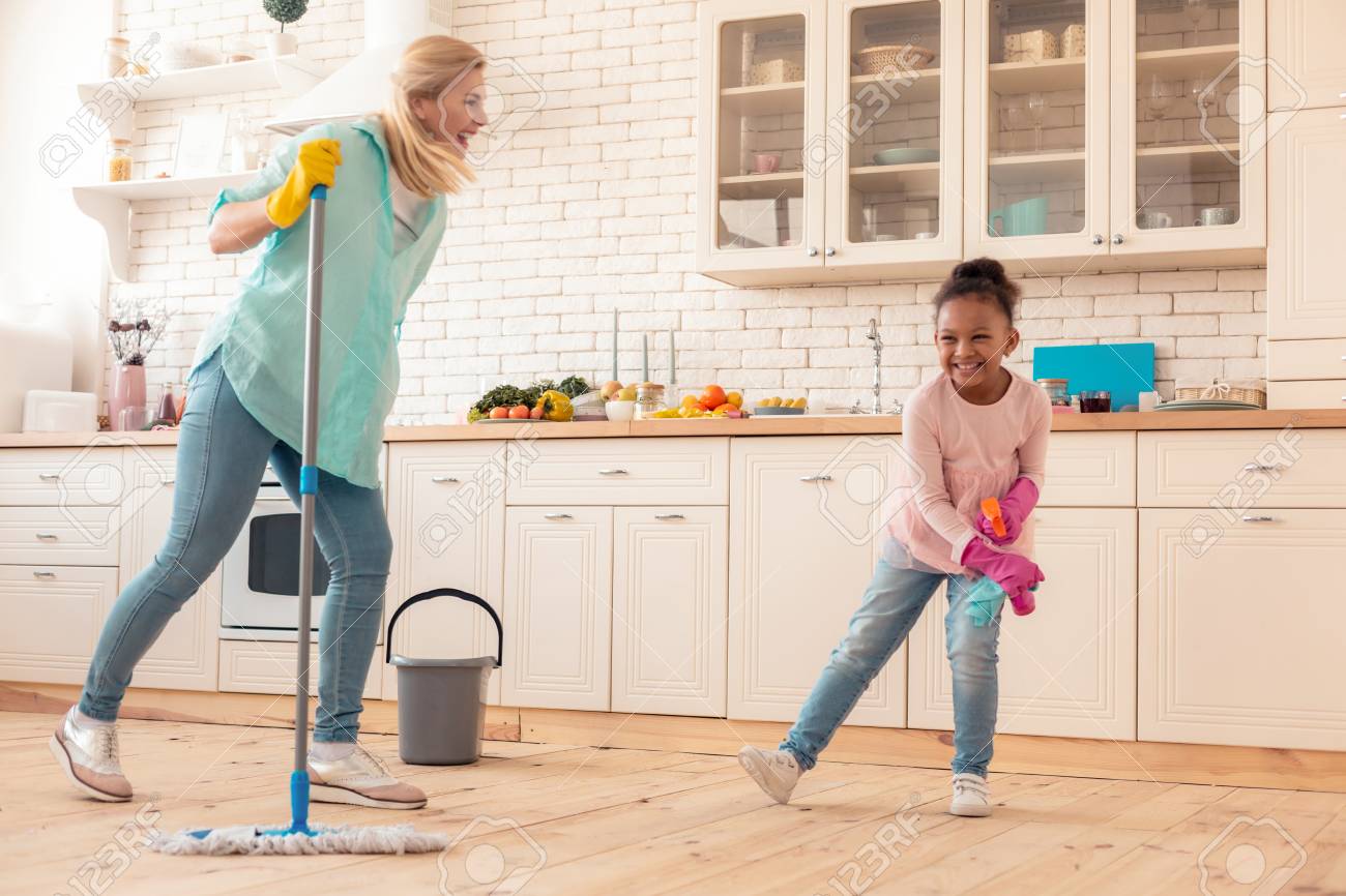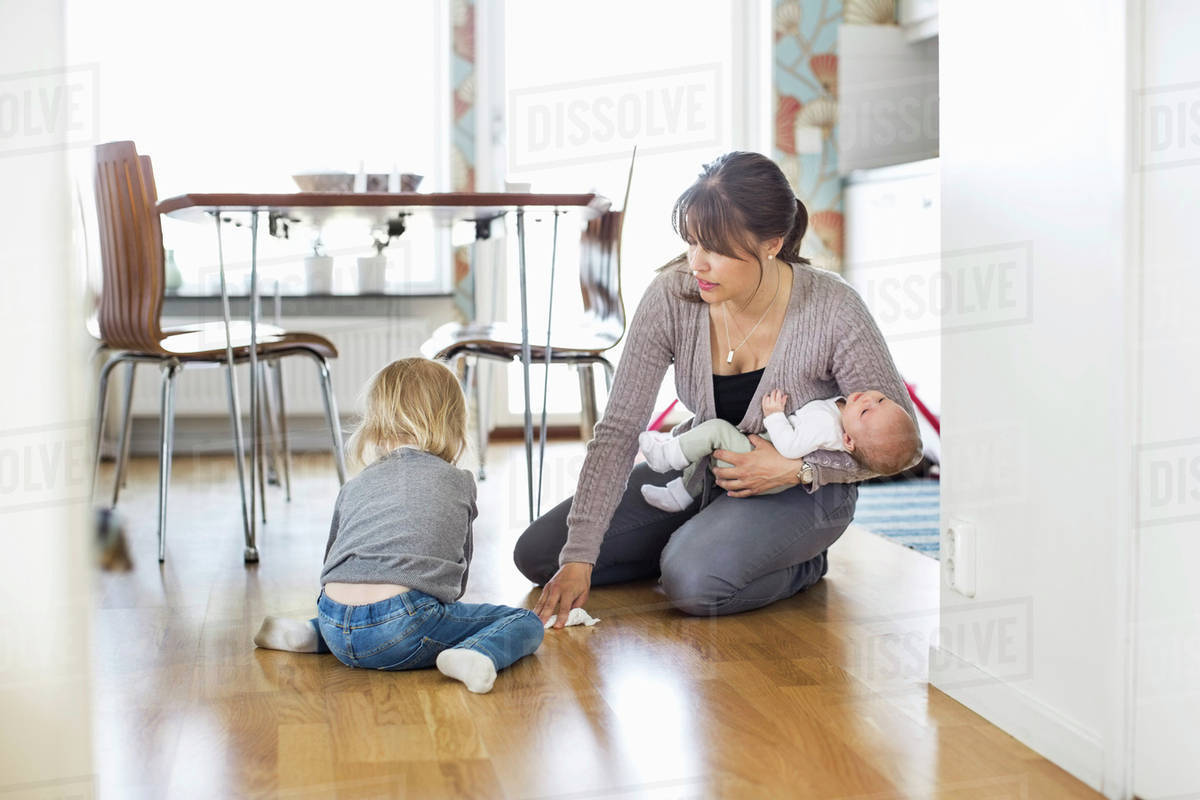 While moms cleaning