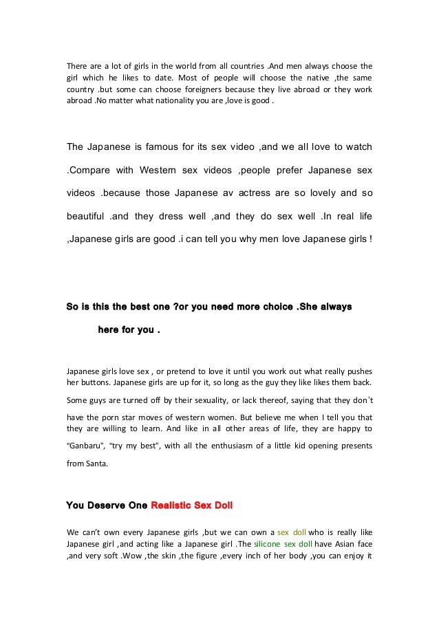 Almost 80% of Japanese are husband material but (at least the one I met) β¦ . life will be not very exciting as if you date a German/American guy . It's more action, definitely . My girl friend biggest worry was that sex will be bad because of the size .