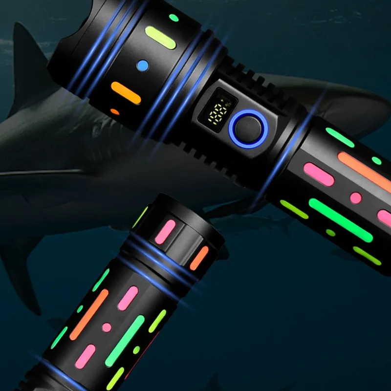 "White Laser LED Flashlight Fluorescent Absorbing Film Luminous Colorful Zoomable Tactical Torch with Power Display for Camping" * Buy Now With Free Shipping Just For $22