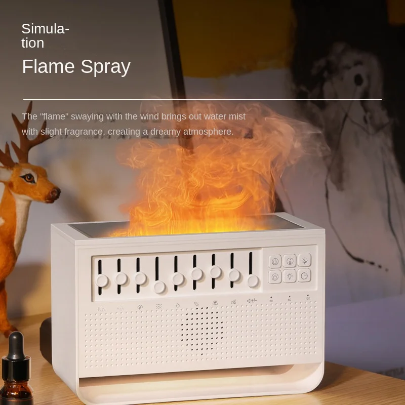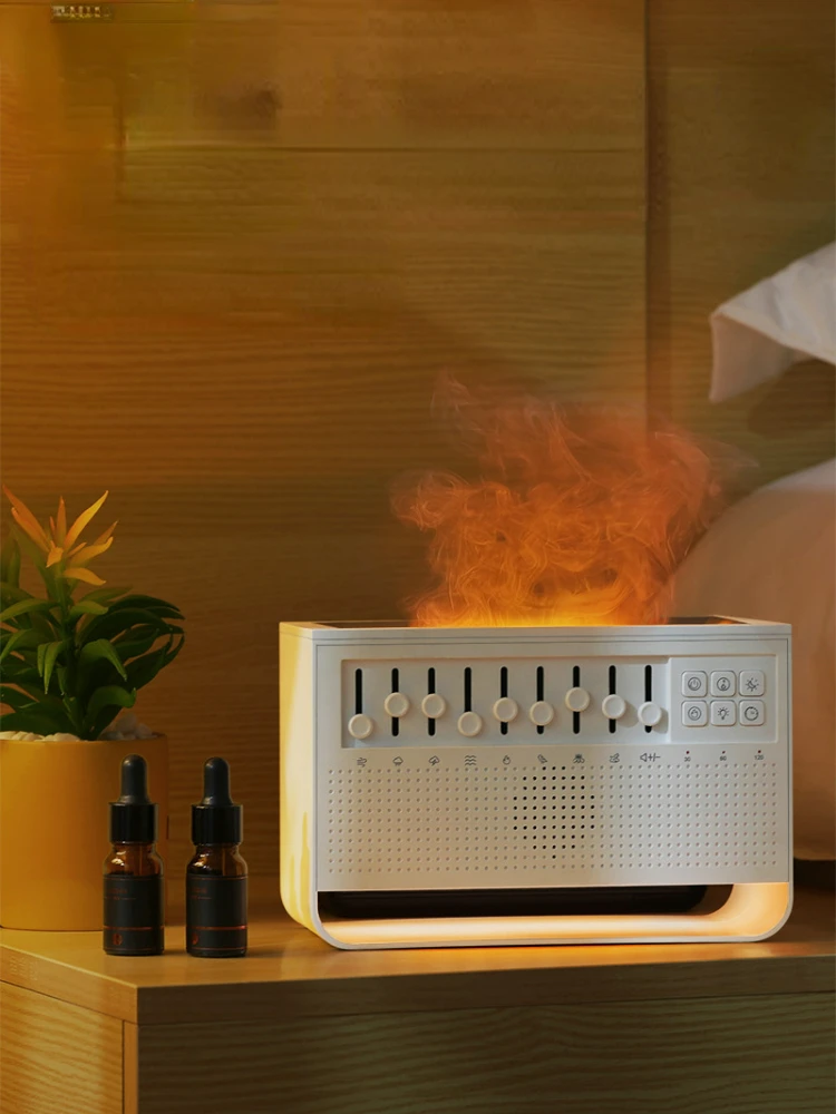 GJmIAvcQhHere you can buy White Noise Aromatherapy Machine Home Desktop Fog Simulation Flame Humidifier Diffuser Radio Shape Timed Shutdown Humidifiers with free delivery to your post office.