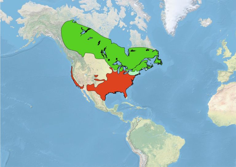 In winter, this species migrates to the southern and eastern United States. They are differential migrants with females migrating farther, increasing the proportion of females at lower latitudes in the Atlantic flyway. Females are smaller so they would not perform as optimally at colder, higher latitudes, and females avoid competition with the dominant males of the winter hierarchies by migrating farther. There is also no benefit for females to be among the first to return after winter, so migrating farther allows the males to return and establish territory a few weeks before their arrival. [10] It stays year round in the Atlantic provinces of Canada. This bird is a rare vagrant to western Europe . Alongside some other species such as the cardinal , dark-eyed junco , song sparrow and chickadees , this species ranks among the most abundant native birds during winter in eastern North America . [11]