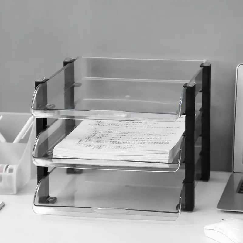 lBzdthCfHere you can buy White Transparent File Holder Three-Layer Plastic Horizontal Frame Student Desktop File Storage Holder Books Magazines Storage with free delivery to your post office.