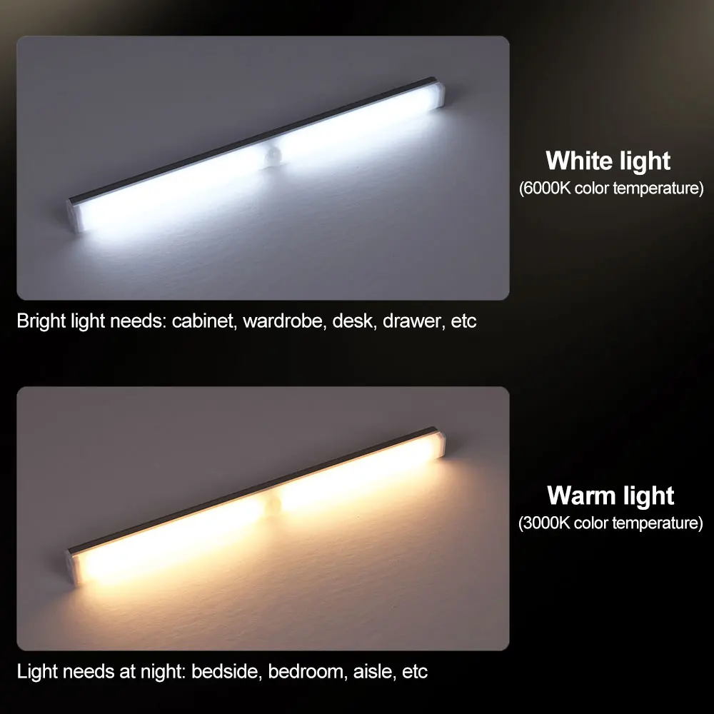 "White/Warm Homelife LED Body Motion Sensor Lights Under Cabinet Closet Night Rechargeable Lamps Brightness Memory Reading Light" * Buy Now Just For 7$