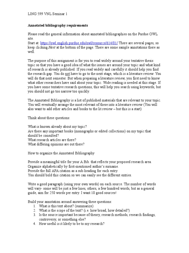 Mla Format Annotated Bibliography Owl Purdue