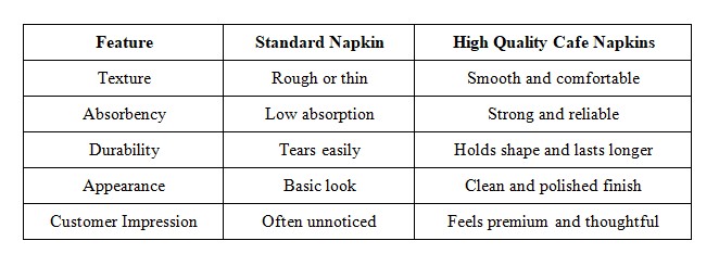 Cafes often underestimate how big the difference can be between standard napkins and higher-quality options. This comparison chart shows how quality helps elevate the dining experience: