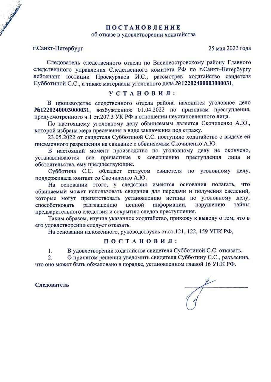 The nasty bonus here is that the witness status makes it difficult for us to get a meeting before the sentence is pronounced. Even if I am under house arrest, I won’t be able to embrace the person dearest to me—what did I do to deserve a punishment like this? Sonya won’t be able to come and see me at the detention center, won’t be on the list of people whom I’ll be able to call. And the same will continue in any place of confinement where they threaten to send me for 10 years, because under no circumstances will Sonya be considered my close relative in this country.