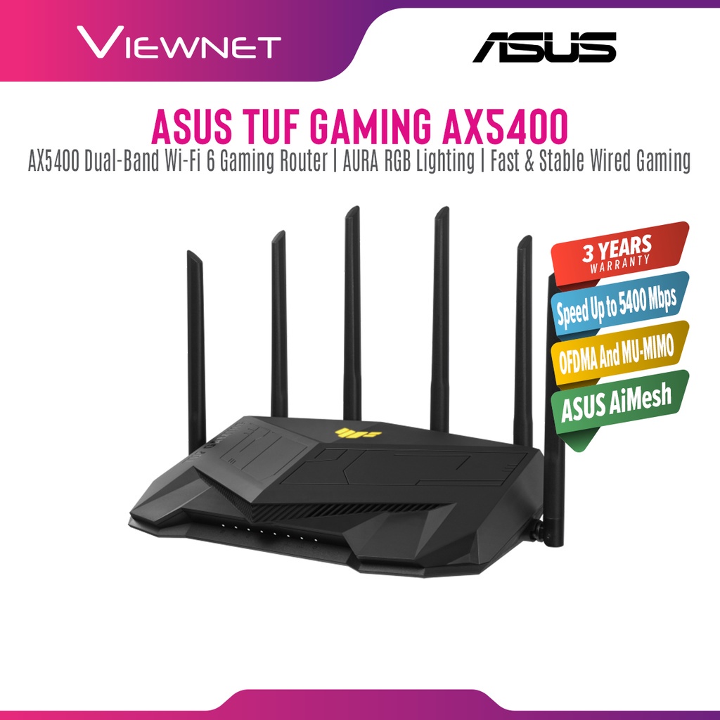 TUF Gaming AX5400 . TUF Gaming AX5400 is designed to give you stable and fast wireless and wired connections in device-dense environments . It's a router that benefits all your devices, from laptops, smartphones, and game consoles right down to all the IoT devices in your home .