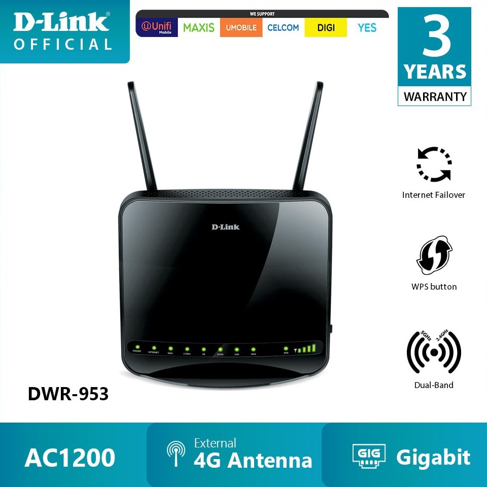 Description . Stay connected . Even when your internet goes down . The DWR-953 Wireless AC1200 4G LTE Multi-WAN Router allows you to seamlessly switch to a 4G LTE mobile internet backup network when your broadband internet goes down, with download speeds of up to 150 Mbps 1, so you can keep using the internet without interruptions .