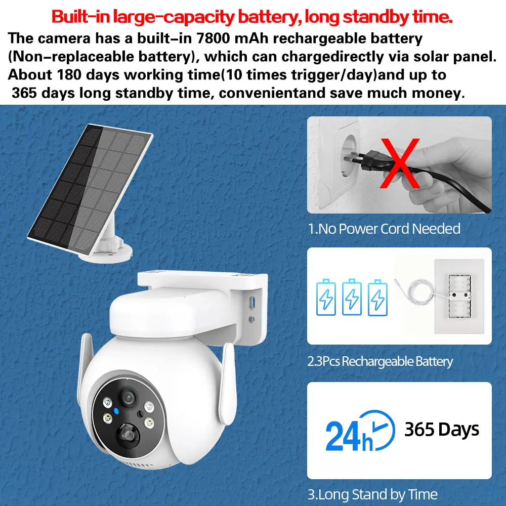 JSYUCSTZCCHere you can buy WiFi PTZ Camera Outdoor Wireless Solar IP Camera 4MP HD Built-in Battery Video Surveillance Camera Long Time Standby iCsee APP with free delivery to your post office.