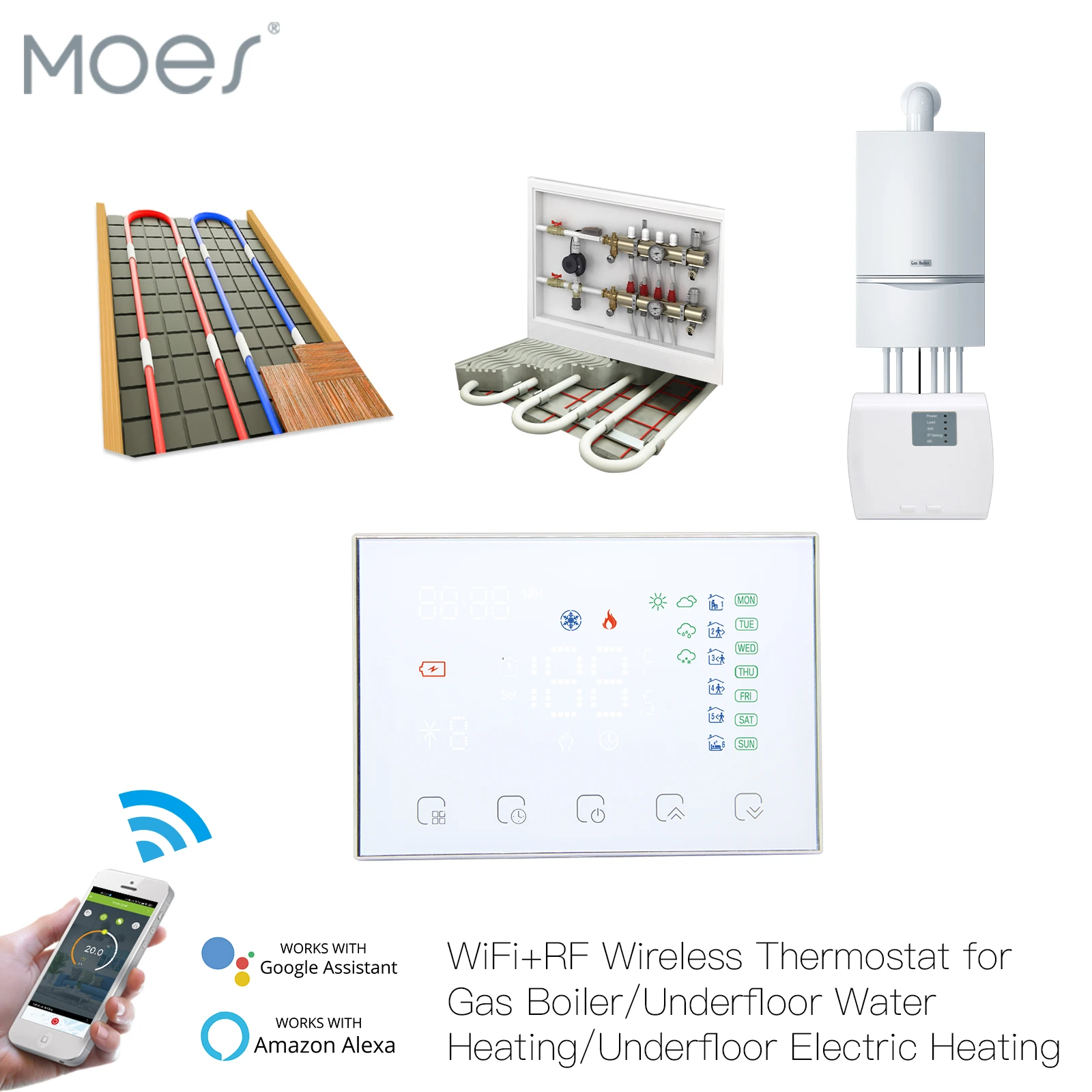 «WiFi RF Thermostat Tuya Smart Temperature Controller RF Receiver Water/Electric/Gas Boiler Heating Smart Life App Alexa Google» по лучшей цене на рынке! Всего за 45$ (4275рублей)