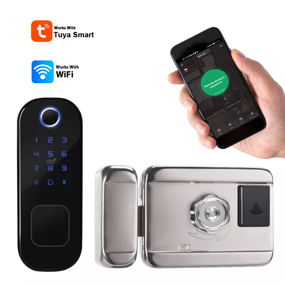 WiFi Rim Lock Tuya Smart Door Lock No Wiring App Remote Fingerprint Smart NFC Card Pin Code Home Automation For Apartment Rental - Купить с бесплатной доставкой