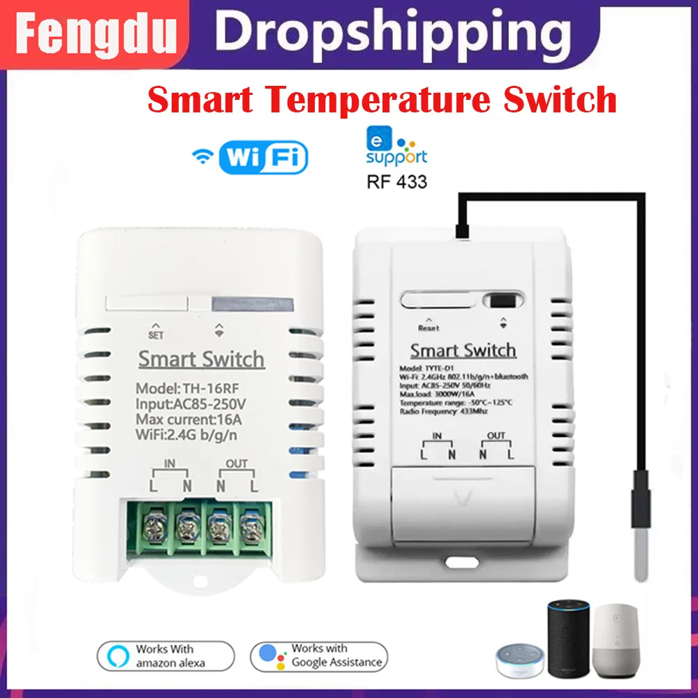 OFZQHeuOvHere you can buy WiFi Smart Temperature Switch 16A 3000W Temperature Monitor Switch Intelligent Compatible with Thermostat Alexa Google with free delivery to your post office.
