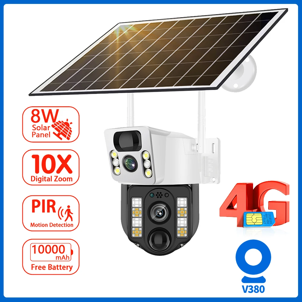 KnPHfqjrycHere you can buy WiFi Solar Camera IP Camera 4G Sim Dual Lens Outdoor PTZ PIR Human Detection CCTV Camera Low Powered V380pro Smart Security Cam with free delivery to your post office.