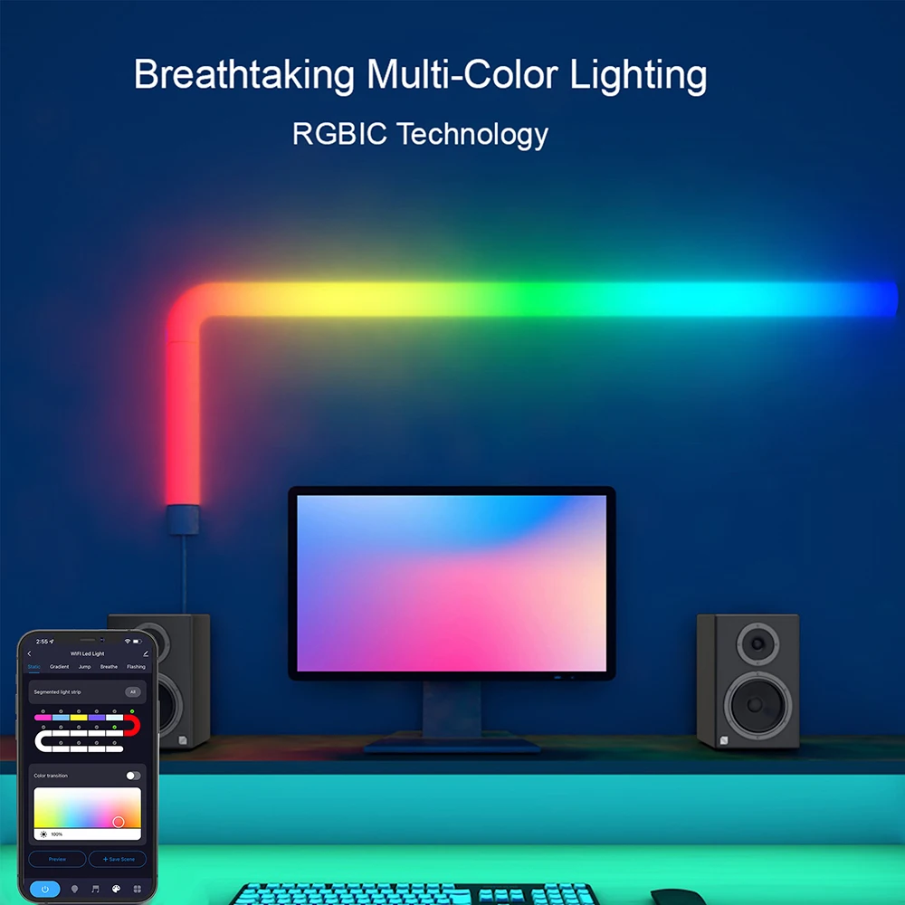 "Wifi Smart LED Wall Lamp DC12V for Gaming TV Bedroom Home Streaming Music Sync RGB Strip Lights Kit Work with Alexa and Google" * Buy Now Just For 57$