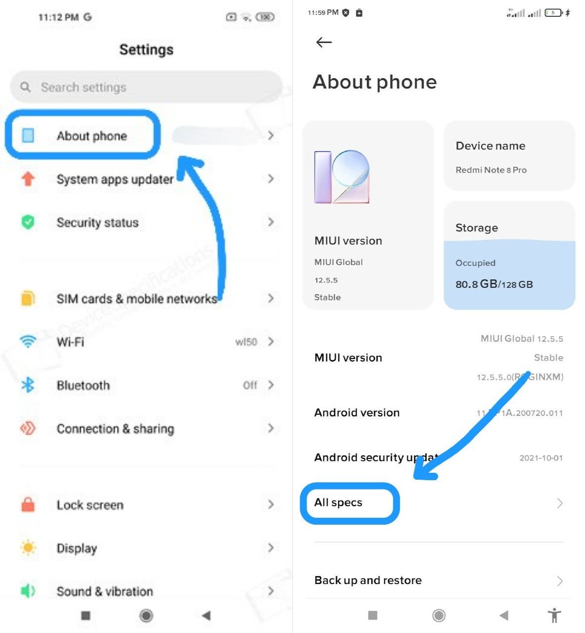 Go Into The settings App, Click on About phone and then click on "All specs"