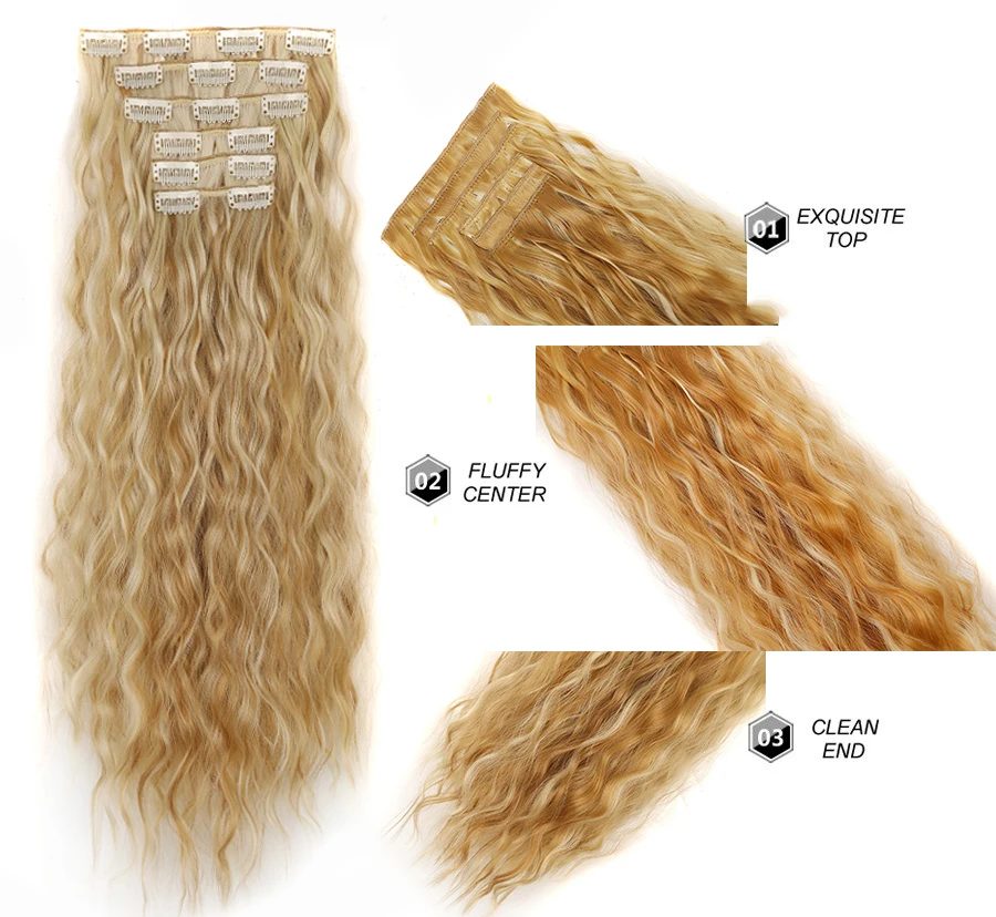 Wigundle 20inch Synthetic Clip In Hair Extensions 4 Color Synthetic Clip In Hair Extensions Long Wavy 6Pcs/Set Piece 16card Clip - Купить с бесплатной доставкой