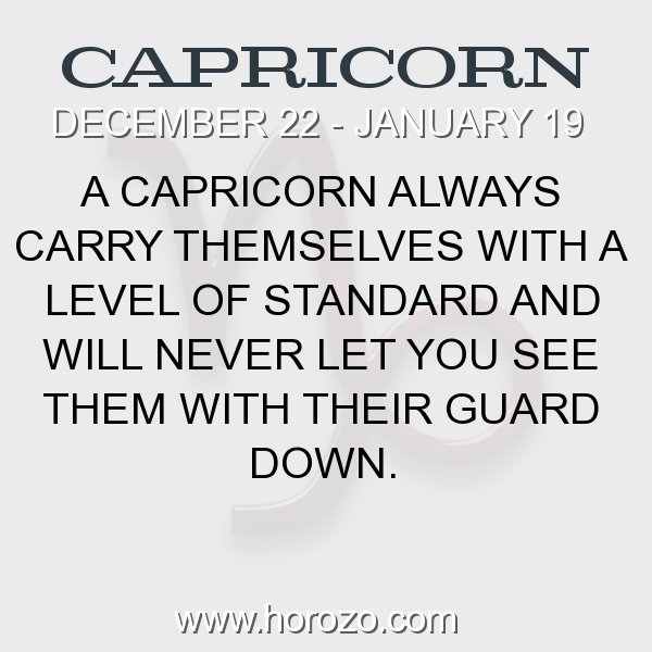 The Capricorn is someone very logical who is happy to just carry on with his life and loves never giving too much thought to how he is turned out or to the pleasures of life, preferring to work hard and to drive his way to success. He is happier in a boardroom than a nightclub and he is someone who can never be accused of being lazy.