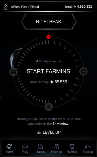 Tap the “Start Farming” button to begin a 6-hour farming session to earn points passively.