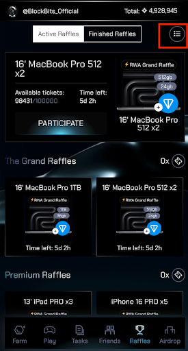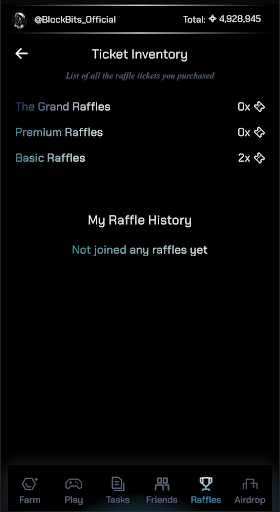Tickets are your golden pass to BlockBits raffles. You can: