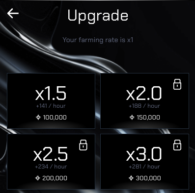 Turn your points into power by upgrading your farming rate and watch your earnings soar. The higher your farming rate, the more points you’ll rack up in every 6-hour session - effortless progress with exponential rewards.