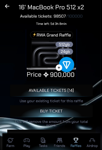 - Buy Them: Use tokens from farming, tapping streaks, tasks, or referrals to stock up on tickets.